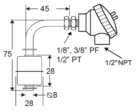 Montaggio galleggiante laterale è conveniente per applicazioni di controllo di livello in piccoli serbatoi in cui è più conveniente installare un interruttore di livello con la parete laterale del serbatoio.Quando il braccio galleggiante si solleva alla custodia dell'interruttore, l'interruttore è attivato.Quando il galleggiante cade lontano dal corpo, questa viene disattivata.Il movimento del galleggiante porta il magnete incastonate in prossimità del reed incapsulata, facendolo azionare.La funzione del contatto può essere a scelta normalmente aperto o normalmente chiuso.