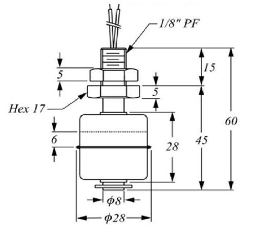 5.Densité:flotter gravité SG doit être inférieure à celle du liquide de mesure ou le flotteur ne flotte pas en place.