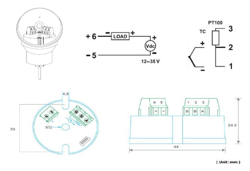 Bộ phát được gắn trên đầu của cảm biến nhiệt độ và chấp nhận hoặc là một ba-dây RTD Pt-100 cảm biến hoặc cảm biến cặp nhiệt điện và chuyển đổi nó thành một tuyến tính tín hiệu dòng điện từ 4 đến 20mA DC, khả năng lái xe tải trọng lên đến 600 Ohms.Thiết bị hoạt động trong hai-cấu hình dây.